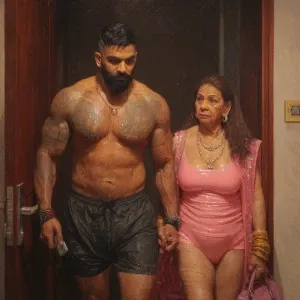 «realism,realistic art. a punjabi villain curvy mother in law,...»