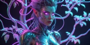 «A shimmering, cybernetic Dryad with Victorian-inspired features...»