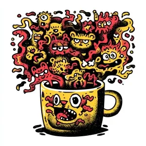 «A vibrant illustration of a coffee cup overflowing with chaotic...»
