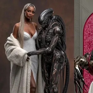 «Create a stylized paper cutout portrait of a glamorous African A...»