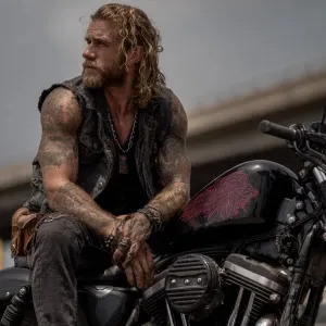 «The image shows a muscular bodybuilder man with a tattooed arm s...»