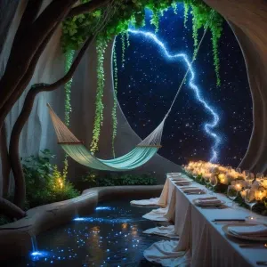 «1. Tree-Cradled Hammock Alcove: In a secluded indoor alcove, a m...»