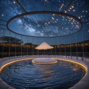 «Floating Stargazer Pavilion: Suspended gracefully above the slow...»