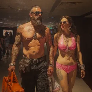 «Hyperrealism painting ,a australia muscular beefy bearded tatto...»
