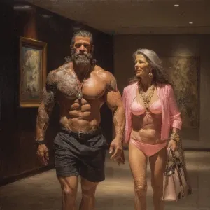 «realism painting ,a australia muscular beefy bearded tattoed sw...»