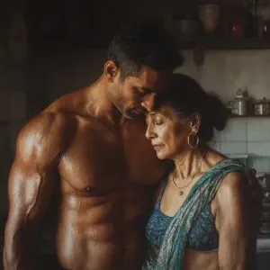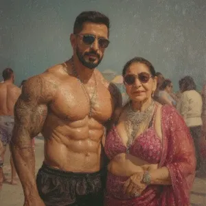 «Hyperrealism photo painting,A sweaty beefy kashmiri man walking...»