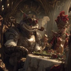«A realistic steampunk fantasy scene, ultra-detailed: the Cheshir...»