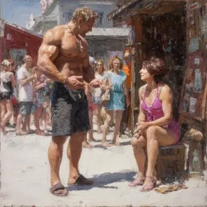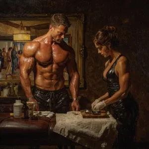 «Hyperrealistic digital painting of a muscular Russian man in his...»