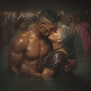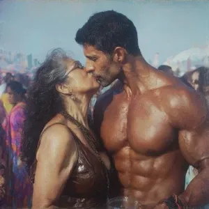 «Hyperrealism photo painting combination,A sweaty beefy kashmiri...»