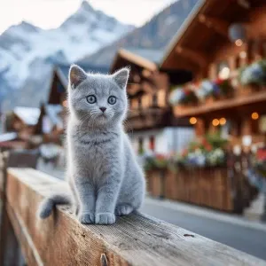 «adorable silver gray British Shorthair kitten named Koko with ro...»