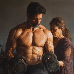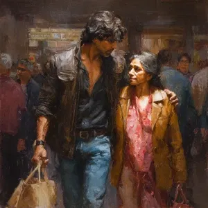 «hyperrealism painting,a muscular beefy kashmiri son in law walki...»