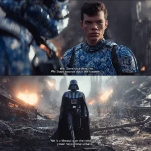 «A rebel stormtrooper, distinctly wearing **blue paisley print ar...»
