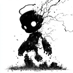 «A small black silhouette of a robot that looks like a wall-e get...»