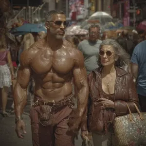 «Hyperrealism photo painting,A sweaty beefy kashmiri man walking...»