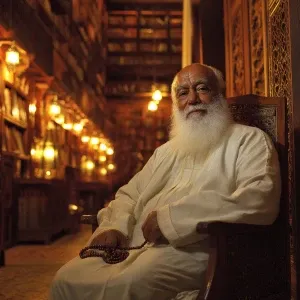 «Create an image of an elderly Muslim man with a long white beard...»
