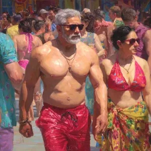 «Photo Hyperrealism, painting,a muscular beefy kashmiri man walki...»