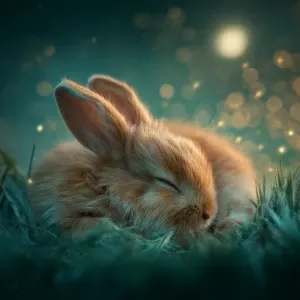 «“baby rabbit (Noodle) entering a dreamy moonlit world imagined t...»