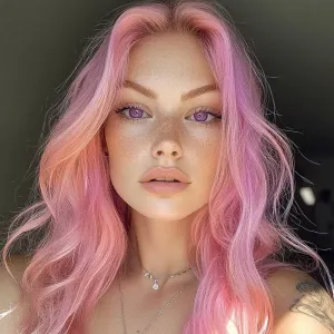 «Photo of A stunning 24yo female, pink hair and purple eyes.»