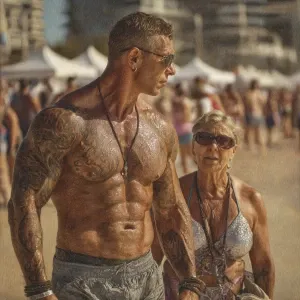 «Hyperrealism,v4.1.a muscular beefy sweaty tattoed australian man...»