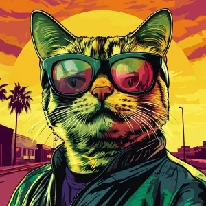 «Elon Musk with CAT face in GTA art style, , in the style of a G...»