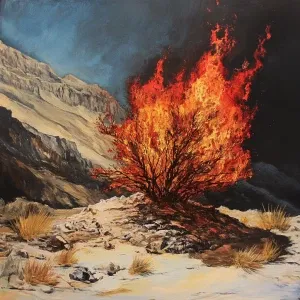«Illustrate the biblical scene where Moses encounters the burning...»