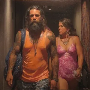 «realism painting ,a australia muscular beefy bearded tattoed sw...»