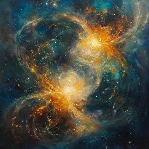 «In the depths of an ancient cosmic tapestry, two distant stars s...»
