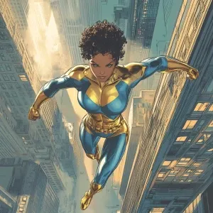 «Gliding gracefully through the azure expanse, the superheroine b...»