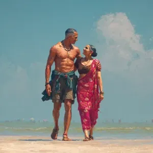 «hyperrealism digital painting.a muscular sweaty indian villain...»