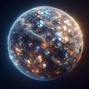 «A mesmerizing vision of a sparkling artificial planet, its surfa...»