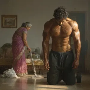 «Hyperrealism digital painting ,a indian villager muscular beefy...»