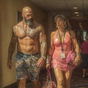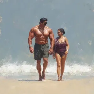 «Hyperrealism digital painting ,a miami muscular beefy bearded ta...»