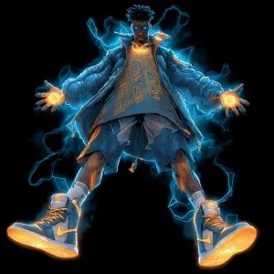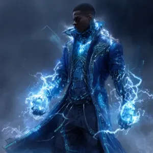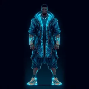 «A powerful superhero character in a futuristic outfit, wearing a...»