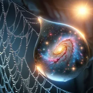 «"A hyper-realistic close-up of a single drop of morning dew on a...»