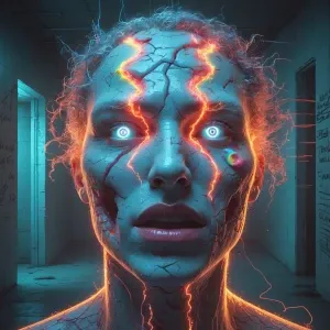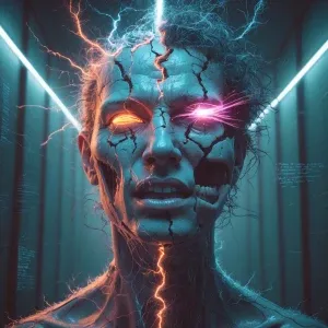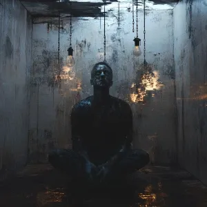 «A hyper-realistic, ultra-detailed horrorcore image of a man in a...»