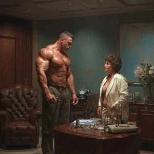 «realism digital painting, a muscular Russian man in his beach ho...»