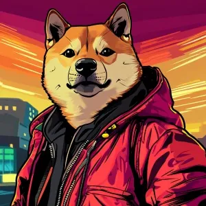 «MEME DOGE in GTA art style, 苦笑, in the style of a Grand Theft...»