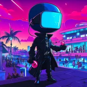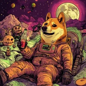 «MEME DOGE in GTA art style, Doge enjoys a massive party on the...»