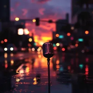 «Create an image of a sunset in Los Angeles after a rain shower w...»