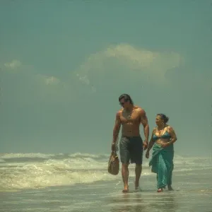 «“A lush meadow overtaken by alien flora — flowers with human-lik...»