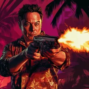«Elon Musk in GTA art style, Elon is firing rocket launchers dua...»