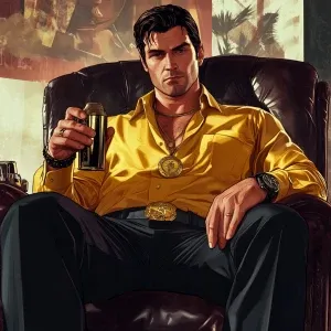 «Elon Musk in GTA art style, i want it to wear a mask and glass...»