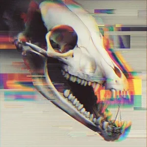 «Portrait of modern day alien bear creature skull with digital gl...»