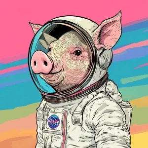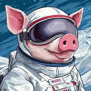 «Cute cartoon pig in vintage white spacesuit and NASA style helme...»
