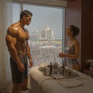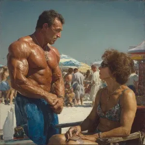 «Hyperrealistic digital painting of a muscular Russian man in his...»