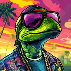 «MEME PEPE in GTA art style, Maverick, in the style of a Grand T...»