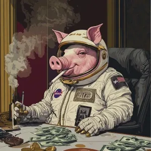 «MEME DOGE in GTA art style, dressed as an astronaut and holding...»