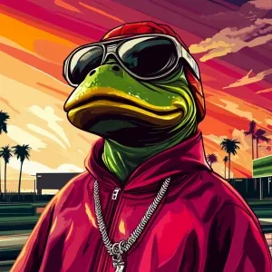 «MEME PEPE in GTA art style, gg, in the style of a Grand Theft A...»