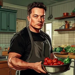 «Elon Musk in GTA art style, cooking, in the style of a Grand Th...»