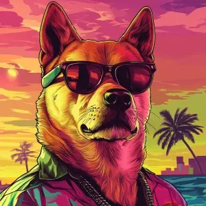 «MEME DOGE in GTA art style, dsvsv, in the style of a Grand Thef...»